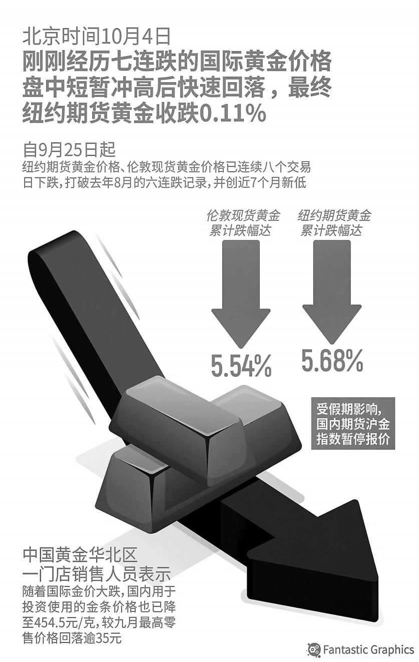 国际金价此前连跌9天